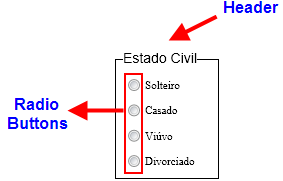 Insere um controle GroupBox no design. Este controle é usado como "recipiente" para outros controles, que geralmente terão funções semelhantes ou se agrupam sob uma mesma categoria, conforme o exemplo abaixo.